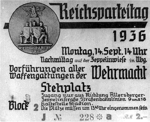 Badge du participant à la réunion annuelle du parti en 1936, à Nürnberg.