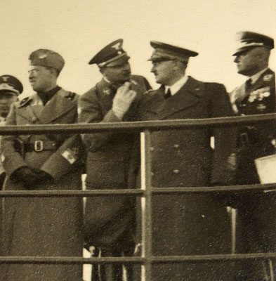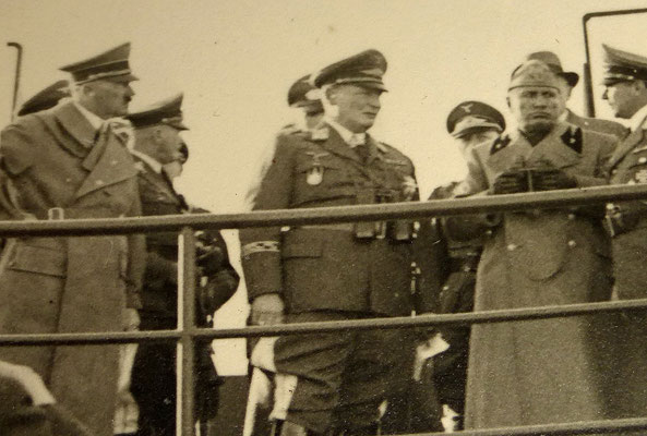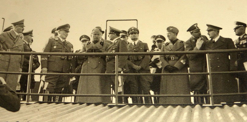 Très rare photo rassemblant dessus les grands dignitaires allemands et ceux de l’Axe : Adolf Hitler, chef de la Luftwaffe Hermann Göring, Benito Mussolini, « l’adjoint » du Führer en tant que chef de la NSDAP Rudolf Hess et un haut dignitaire roumain.