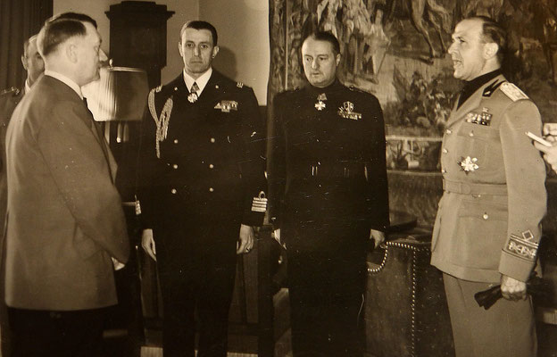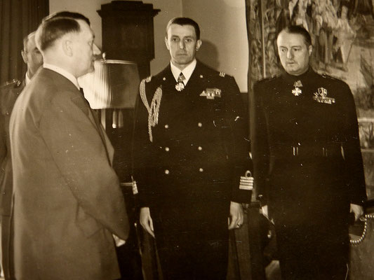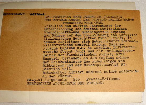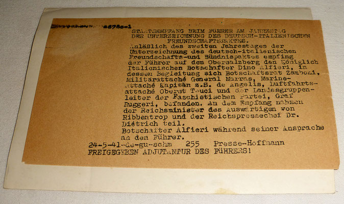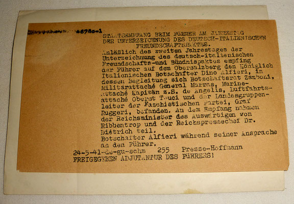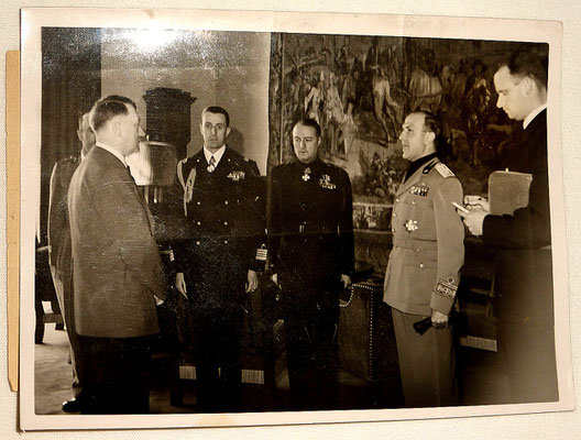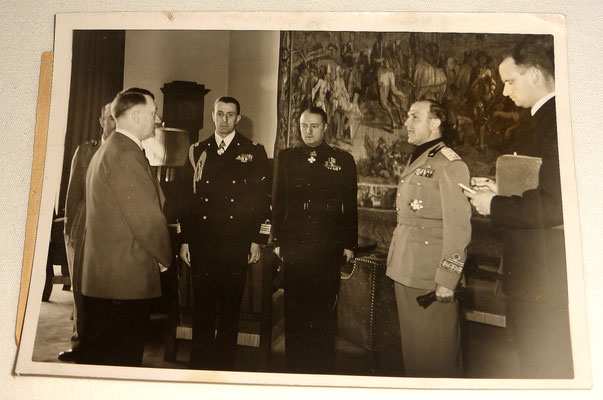 Pièce exceptionnelle : photos d’Adolf Hitler de très près durant la réception d’une délégation des dignitaires italiennes faschistes à Obersalzbergn, dont Dino Alfieri, ambassadeur de l’Italie en Allemagne, membre du Grand Conseil italien du fascisme https://fr.wikipedia.org/wiki/Dino_Alfieri
