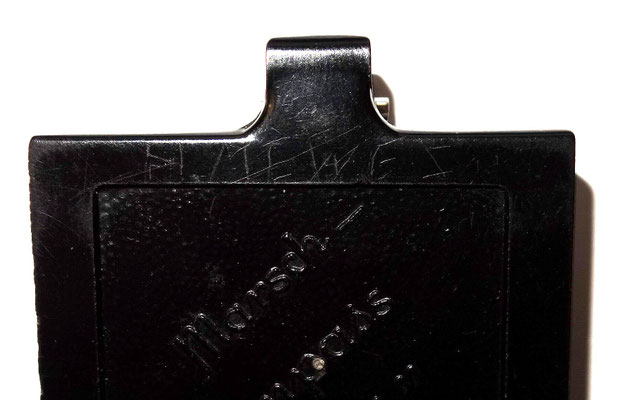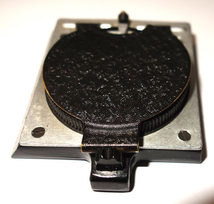 Le nom de l’ancien porteur est marqué à la main, sur le bakélite du fond.
