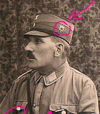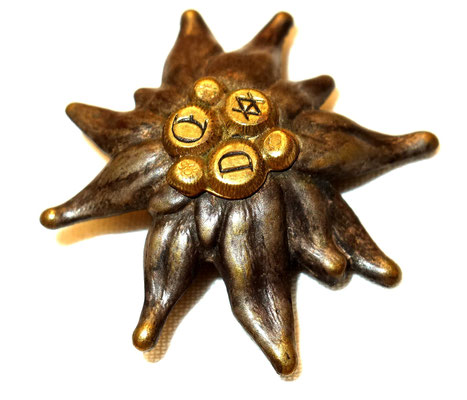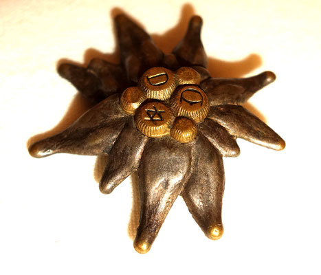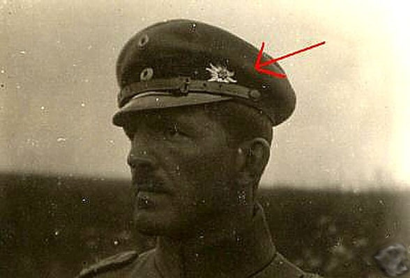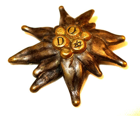 Edelweiss pour la casquette d’officier/sous-officier chasseur alpin de l’Aplenkorps WW1 ; le même est porté sur les képis de la SA/Sturmabteilung.