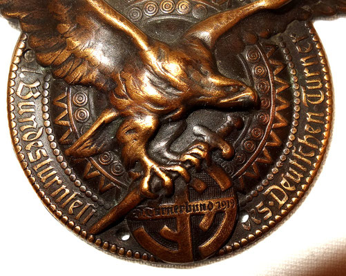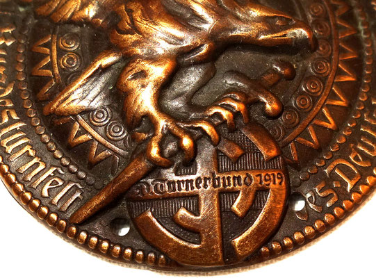 C’est le seul insigne allemand avec le svastika dessus qui existait avant la fondation de la NSDAP. Et c’est en se basant en bonne partie sur cette croix gammée de l’insigne de la Deutscher Turnerbund, qui n’a strictement rien à avoir avec des nazis, que Friedich Krohn (membre de la DAP qui est à l’origine de la NSDAP), mentionné dans le Mein Kampf, a proposé en mai 1919 le svastika comme emblème du parti nazi (!). Ce même Friedich Krohn a choisi les couleurs noir-blanc-rouge qu’Hitler a retenu (il a bien aimé que le svastika proposé venait non pas d’une organisation strictement allemande, mais austro-allemande – ce qui est le cas de Turnerbund).