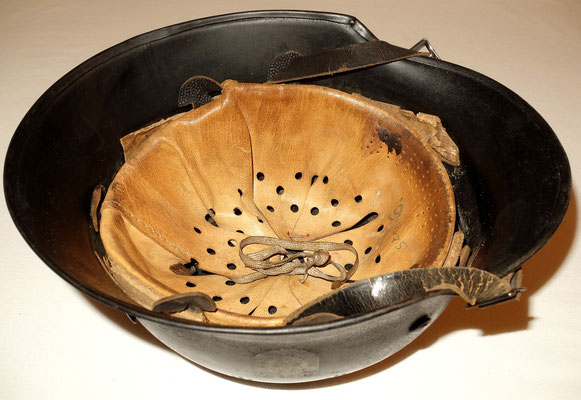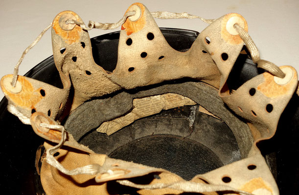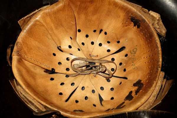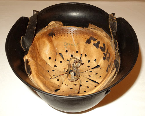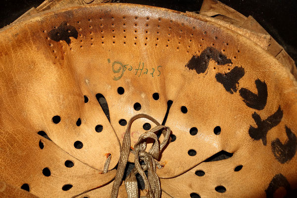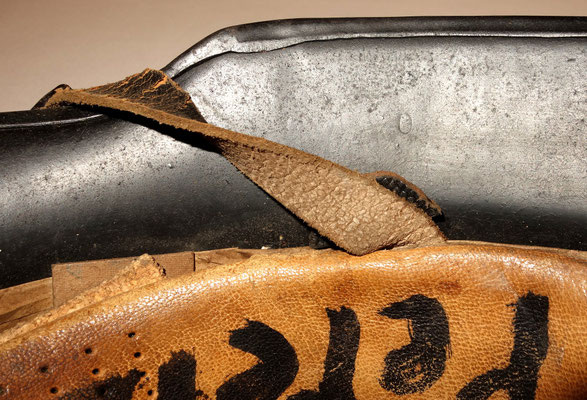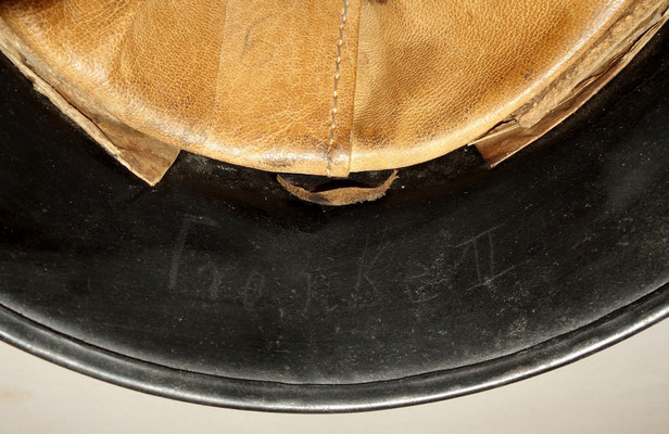 Le nom de l’ancien porteur est triplement marqué à la main sur le cuir et sur le bord de la coque, à l’intérieur.