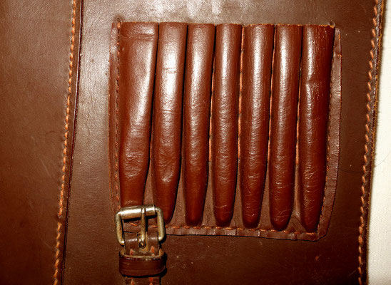 Avec un tampon SS et un poinçon « RZM » (pour ReichsZeugMeisterei) sur le cuir, à l’intérieur.
