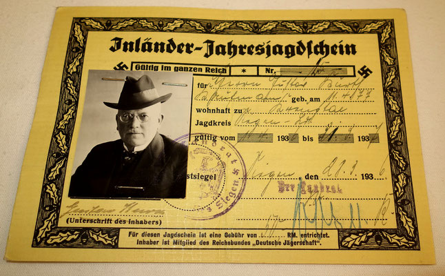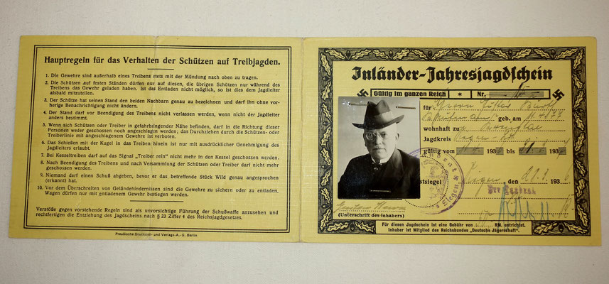 Inländer Jahresjagdschein - Permis de chasse - document très rare.