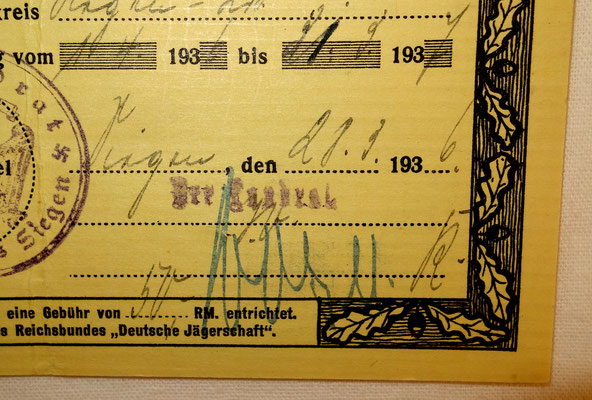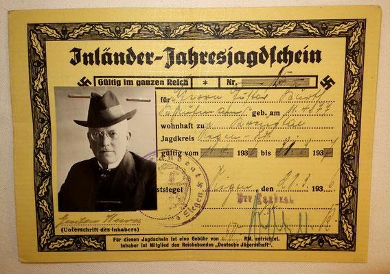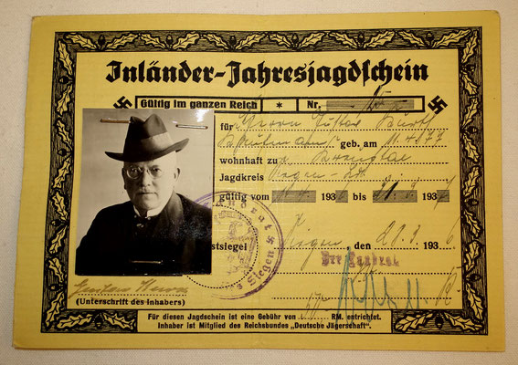 DOC /PERMIS DE CHASSE ALLEMAND du IIIème REICH. /9418