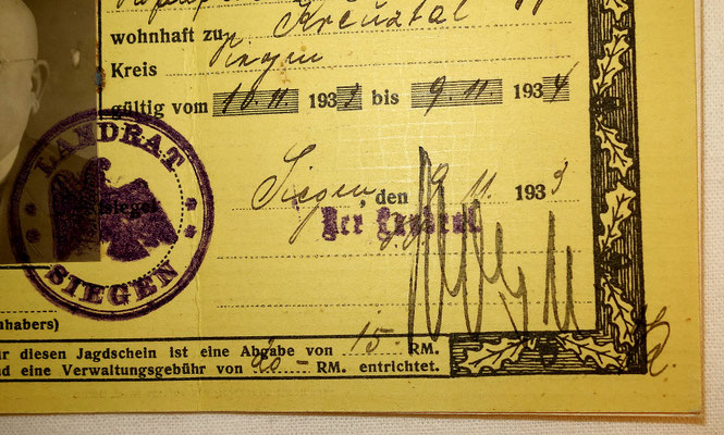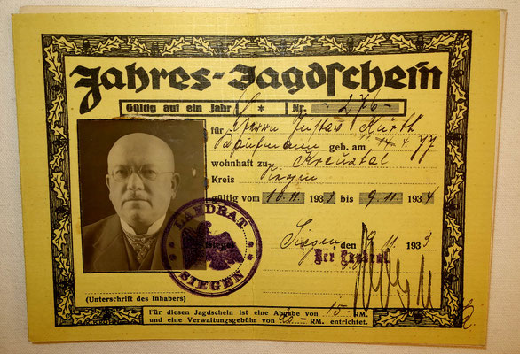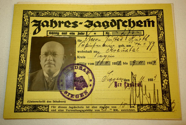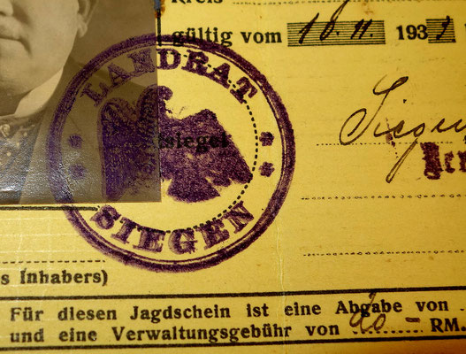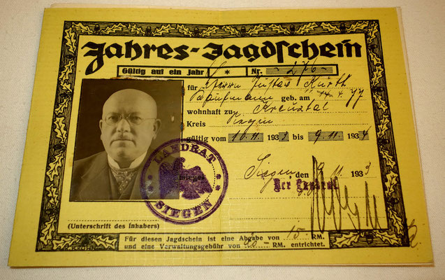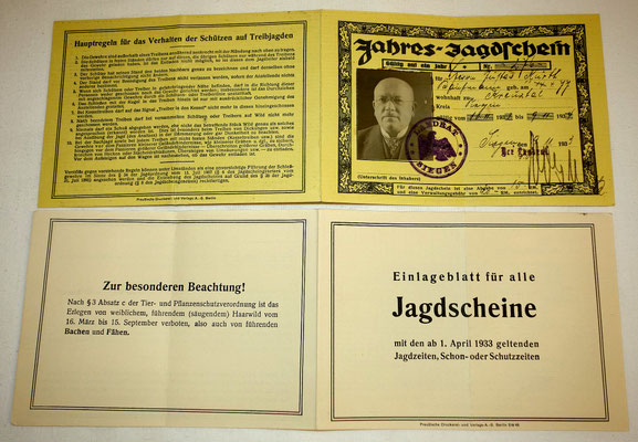 Inländer Jahresjagdschein - Permis de chasse - document très rare des débuts du 3ème Reich.