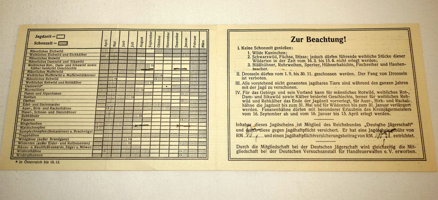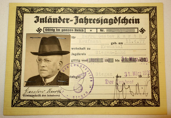 DOC /PERMIS DE CHASSE ALLEMAND du IIIème REICH. /9438