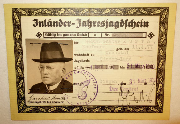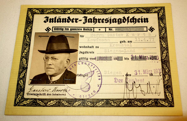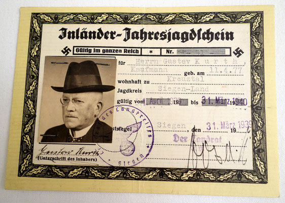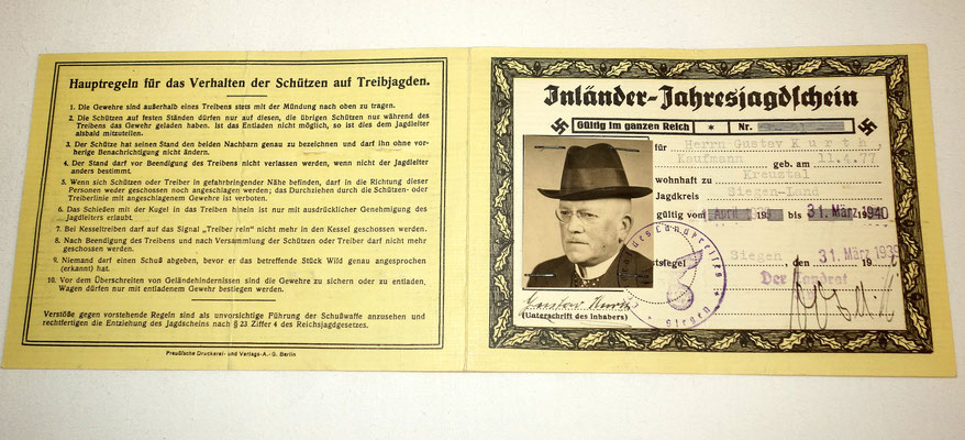 Inländer Jahresjagdschein - Permis de chasse - document très rare.