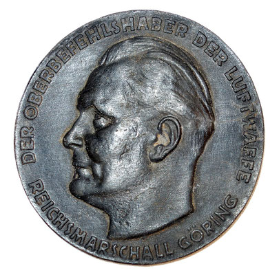 Le côté face est avec le profil de Göring et marqué « DER OBERBEFEHLSHABER DER LUFTWAFFE REICHSMARCHALL GÖRING » / « LE COMMANDANT EN CHEF DE L'ARMEE DE L'AIR REICHSMARCHALL GÖRING ».