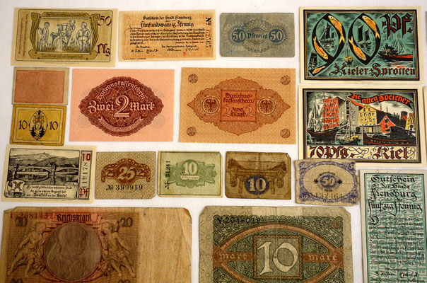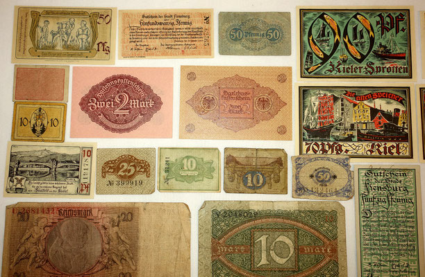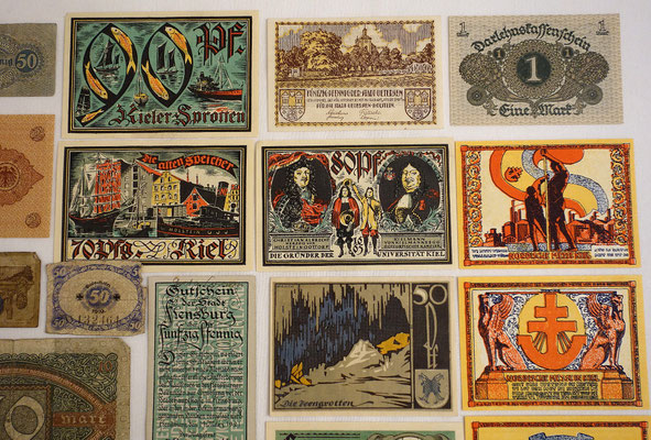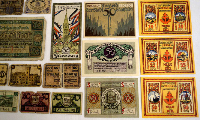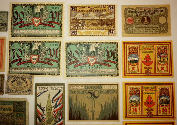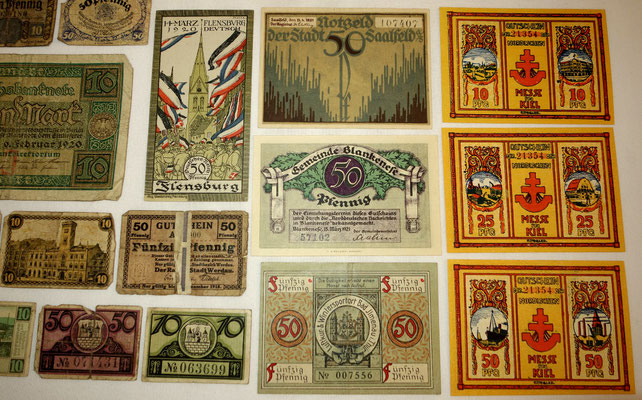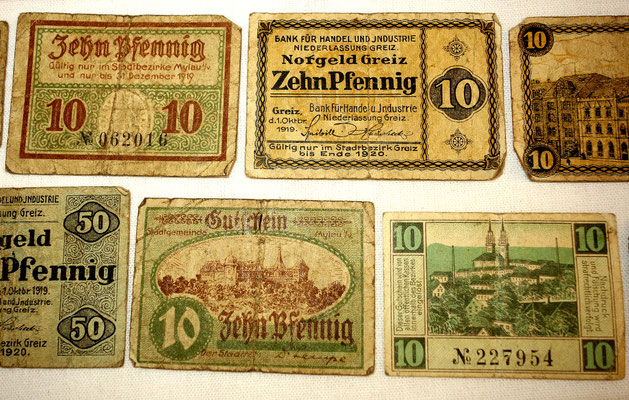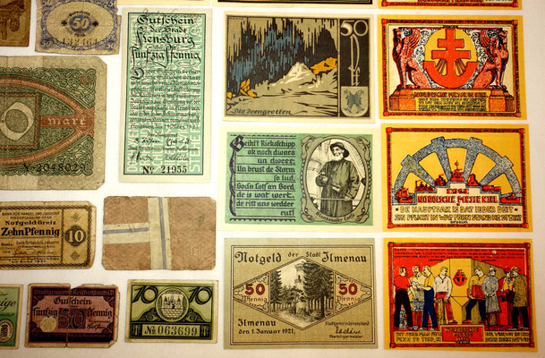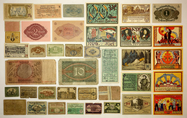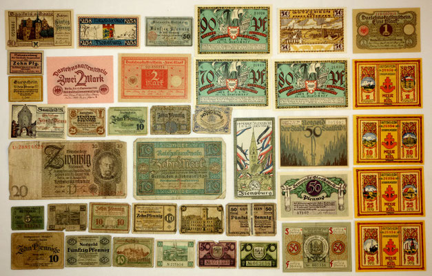L’époque a connu l’hyperinflation au point que les billets imprimés par la banque centrale perdaient le plus souvent beaucoup de valeur entre le moment de l’impression et leur mise à la circulation. Alors, les régions, voir les municipalités imprimées leur propres billets de banque locales qui ont eu plus de valeur que les billets d’état, car ont été valables et ont été gérés qu’au niveau local. 34 sur les 39 billets de cette collection sont ce type de monnaie.
