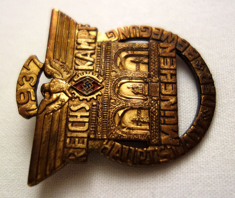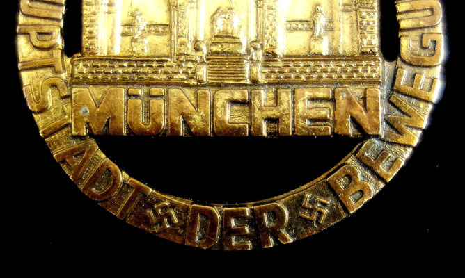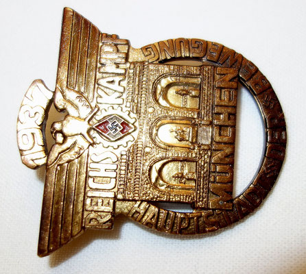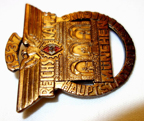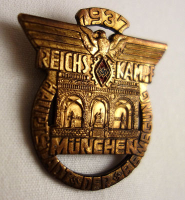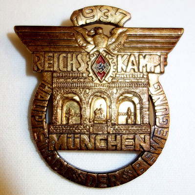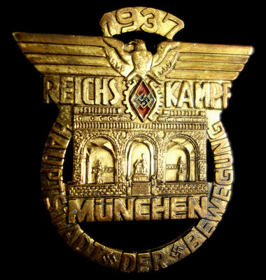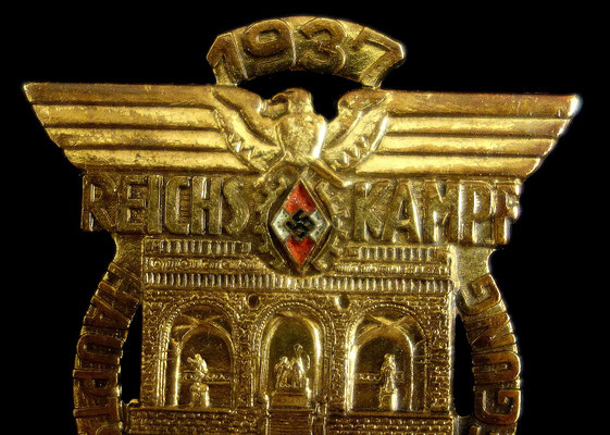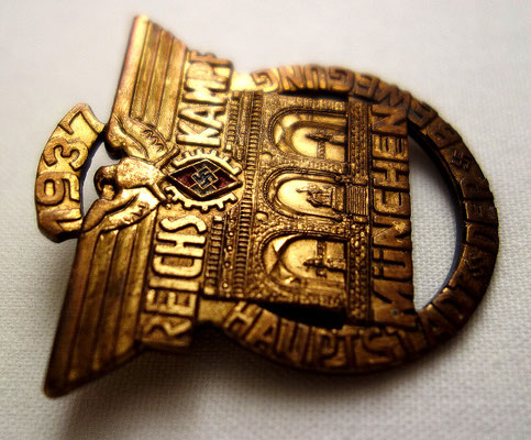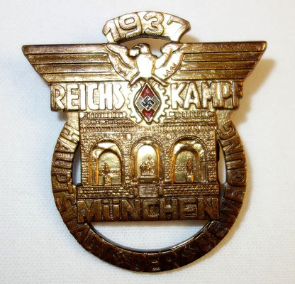 Modèle rare plaqué or des travailleurs de la HJ : « REICHS KAMPF MUNCHEN HAUPTSTADT DER BEWEGUNG 1937 ».