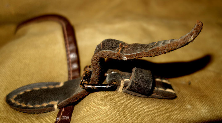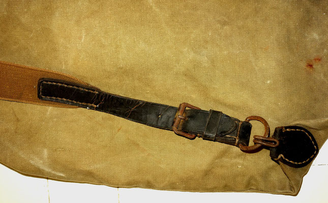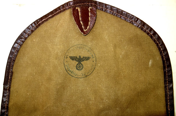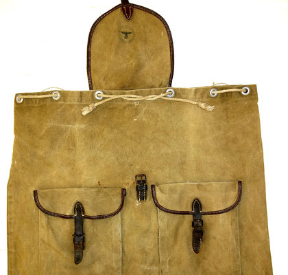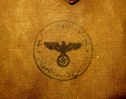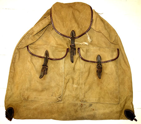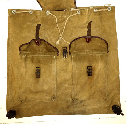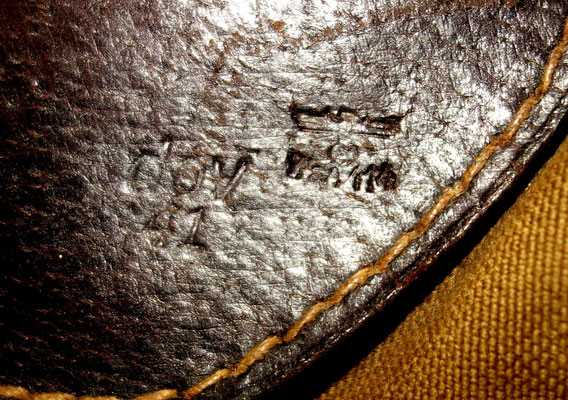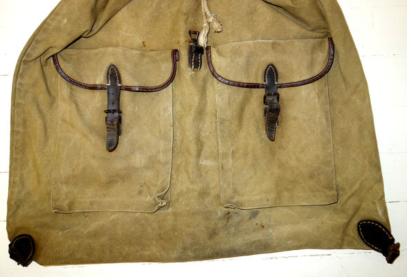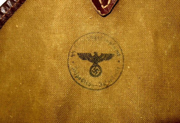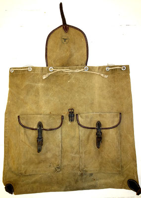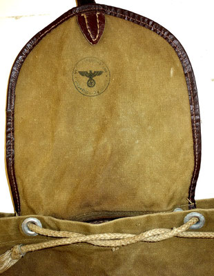 Avec les poinçons sur le cuir « dov41 » et l’aigle « Wa.A.414 » de la partie dorsale et un tampon SS sur la toile de la partie rabattable, à l’intérieur.