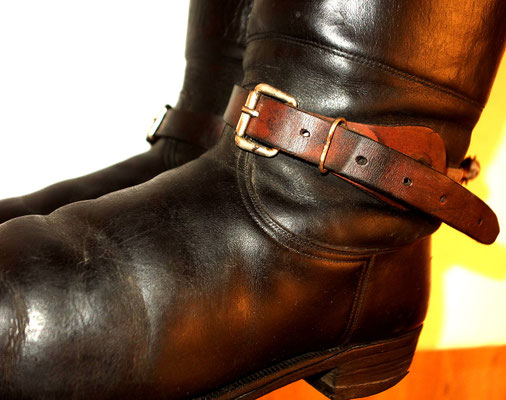 Modèle haut d’officier de la cavalerie en cuir noir.