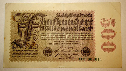 « Der Jude nahm Silber, Gold und Speck, uns Deutschen liess er diesen Dreck » - « Le Juif a pris de l'argent, de l'or et du lard, à nous les Allemands il nous a laissé cette saleté ». En parlant de « cette saleté », ils parlaient de ce billet qui ne valait plus rien durant l’hyperinflation, même pas le papier sur lequel il a été imprimé.