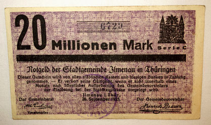 L’époque a connu l’hyperinflation au point que les billets imprimés par la banque centrale perdaient le plus souvent beaucoup de valeur entre le moment de l’impression et leur mise à la circulation. Alors, les régions, voir les municipalités imprimées leur propres billets de banque locales qui ont eu plus de valeur que les billets d’état, car ont été valables et ont été gérés qu’au niveau local. Ce billet en fait