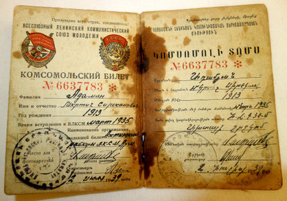 Le porteur de ce livret, né en 1913, a été admis à Komsomol à 1935, soit à l’âge de 22 ans.